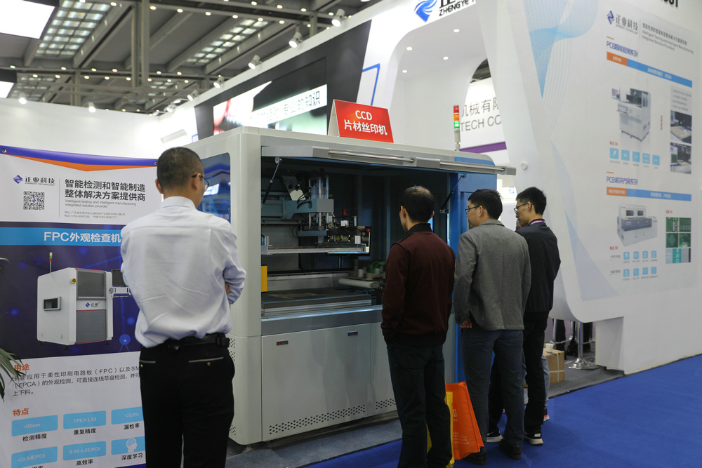 展位現場展示了字符噴印機、自動線寬測量儀、CCD片材絲印機和PCB/FPC材料,觀展人士可以近距離參觀產品,看設備如何自動化、智能化操作。
