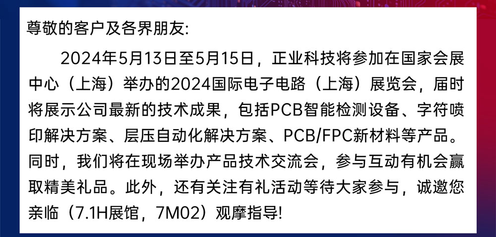 邀請函 | 正業(yè)科技誠邀您共赴2024 國際電子電路(上海)展覽會
