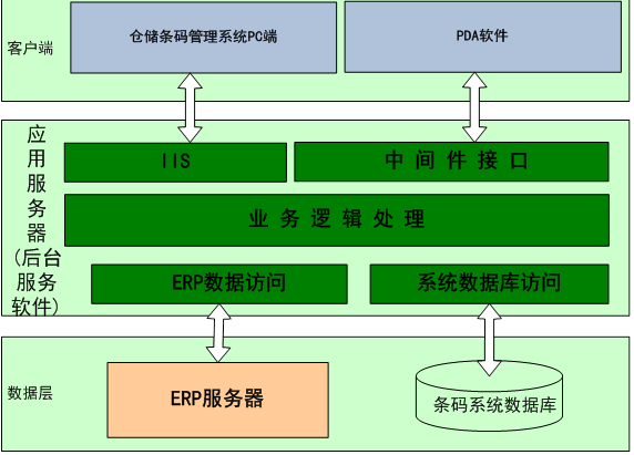 數據層為ERP服務器和條碼系統服務器。